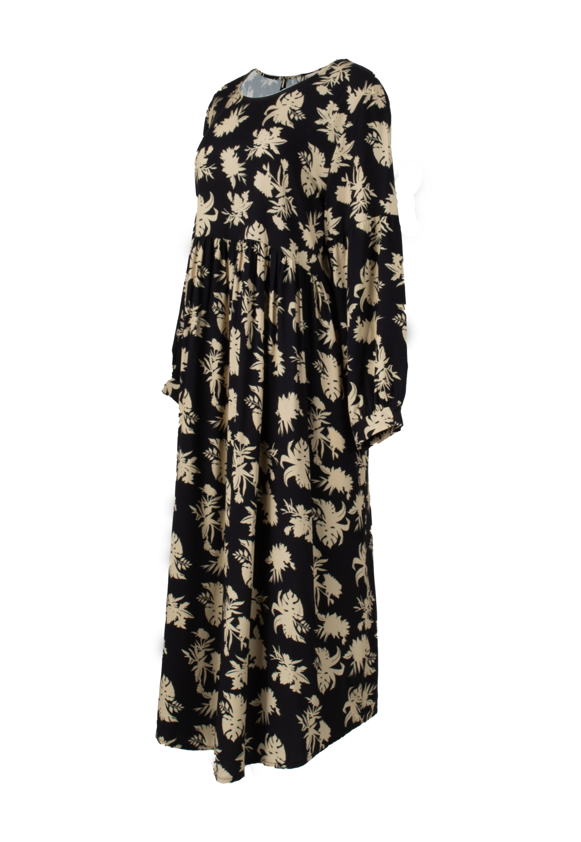 Poboljšajte svoju garderobu s našom prekrasnom cvjetnom midi haljinom! Izrađen od 100% viskoze, ovaj elegantni komad nudi savršenu kombinaciju udobnosti i stila, savršen za ležerne izlaske ili svečana okupljanja. S pripijenim, širokim krojem, dugim rukavima koji se kopčaju na zapešću i šik kopčanjem na stražnjoj strani, ova haljina savršeno pristaje i jednostavna je za nošenje. Kružni ovratnik dodaje dašak sofisticiranosti, čineći ga savršenim i nježnim