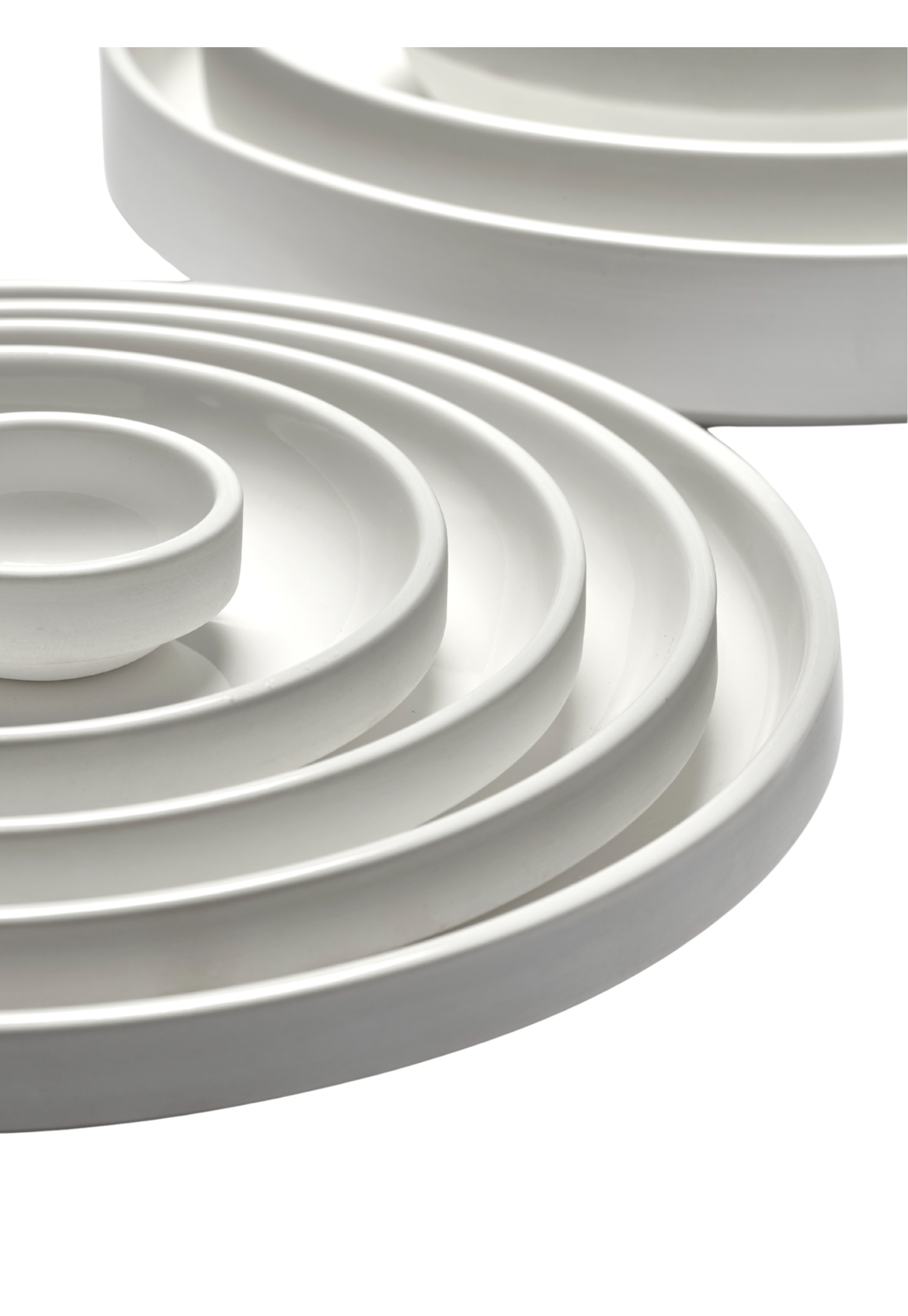 The straightforward, neutral design, and the raised edges of the plates and bowls enable you to make countless combinations. The off-white glazed inside and the white or black finish on the outside always ensure a special contrast.